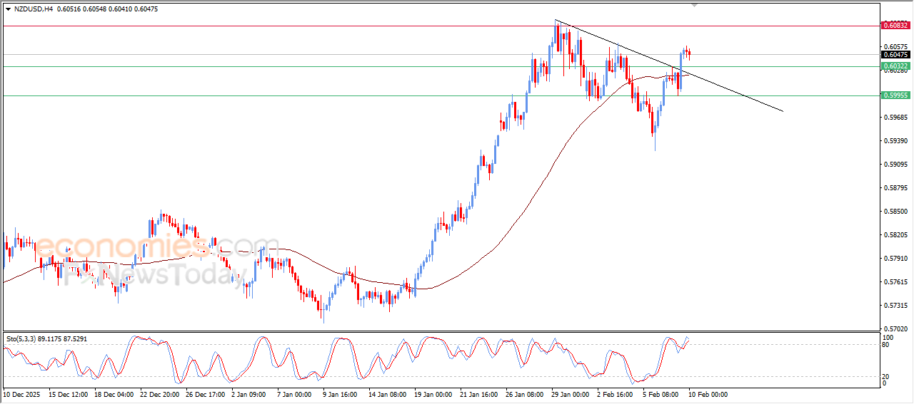 Cena (NZDUSD) v poslednom intradennom obchodovaní klesla v snahe zotaviť sa z predchádzajúcich nárastov a získať býčí momentum, ktoré by jej mohlo pomôcť obnoviť silné zisky. Okrem toho sa zbavila niektorých svojich jasných prekúpených podmienok na indikátoroch relatívnej sily, najmä s objavením sa negatívnych prekrývajúcich sa signálov, ovplyvnených prelomením medvedej korekčnej trendovej línie v krátkodobom horizonte, čo oznamuje jej oživenie a návrat k hlavnej dominancii býčieho trendu. Okrem toho dynamická podpora, ktorú predstavuje obchodovanie nad EMA50, posilňuje šance na jej rast.